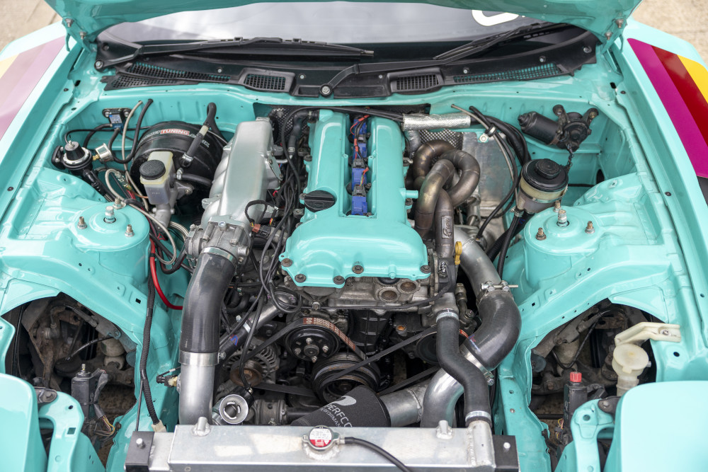 Engine/Tuning:SR20DET swap; Pulsar Turbo (turbo + intercooler); Turbosmart BOV/FPR6/eBoost2; ECU Master management + Digital Display + PMU; ATL fuel cell; Odyssey race battery; custom dual side-exit exhaust; engine refresh + full vehicle wiring by Motor City Performance; approx 450–460bhp.