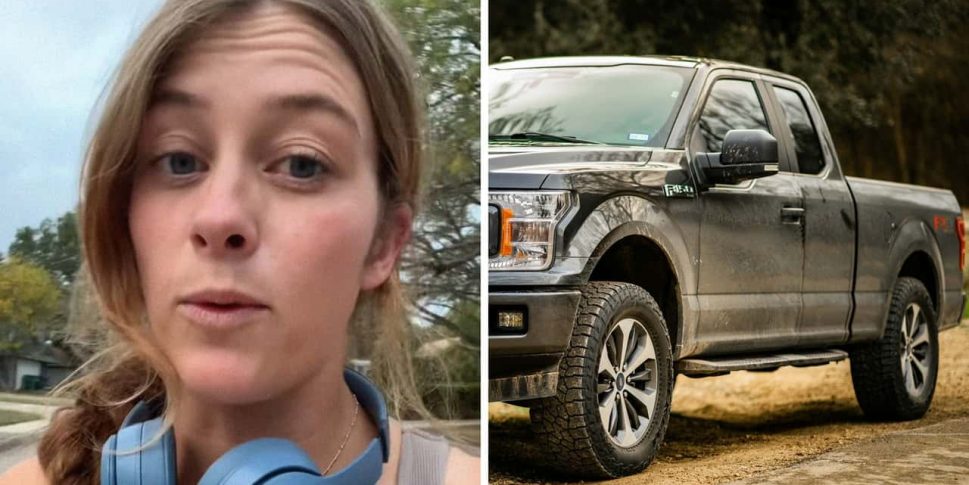 “I woke up this morning to head out to work and saw that my tailgate was down on my F-150,” she says. “I had some boxes in there because I’m getting ready to move and I didn’t remember opening the tailgate to get them out.”