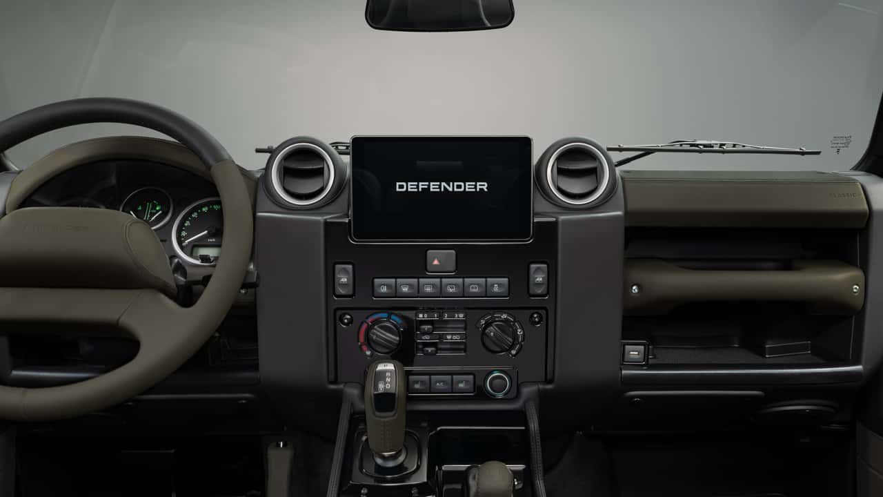 The connection to today’s Defender Octa continues inside, where the Classic can be ordered with the same fabric and leather upholstery choices. Depending on which material you select, colors include Khaki Green, Light Cloud, Lunar, Burnt Sienna, and Ebony. These shades can be extended beyond the seats to cover the headliner, door cards, dashboard, transmission levers, and steering wheel.